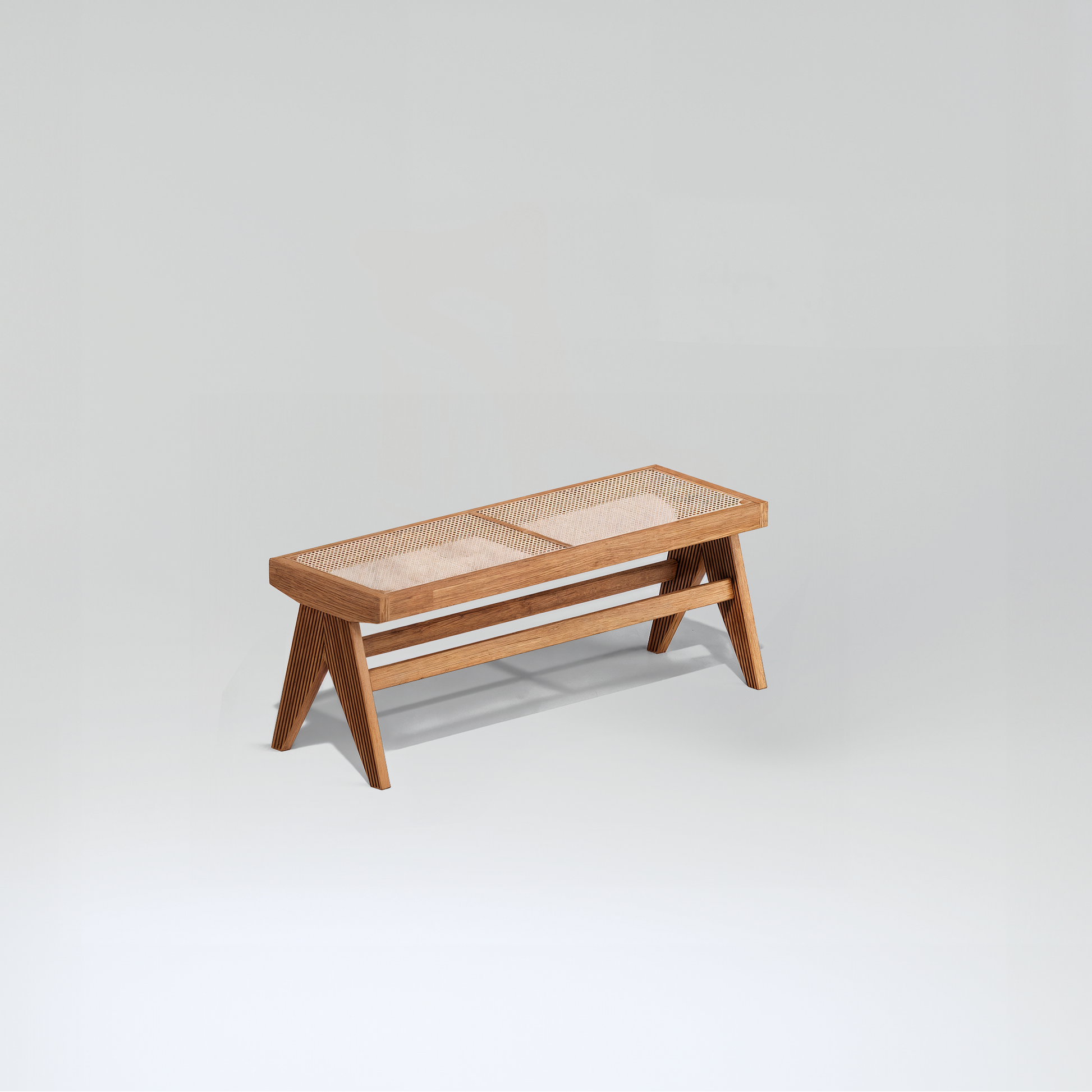 Cala combines a solid teak structure with a woven cane surface, offering both visual lightness and everyday comfort. Ideal for dining areas, bedrooms, or transitional spaces.