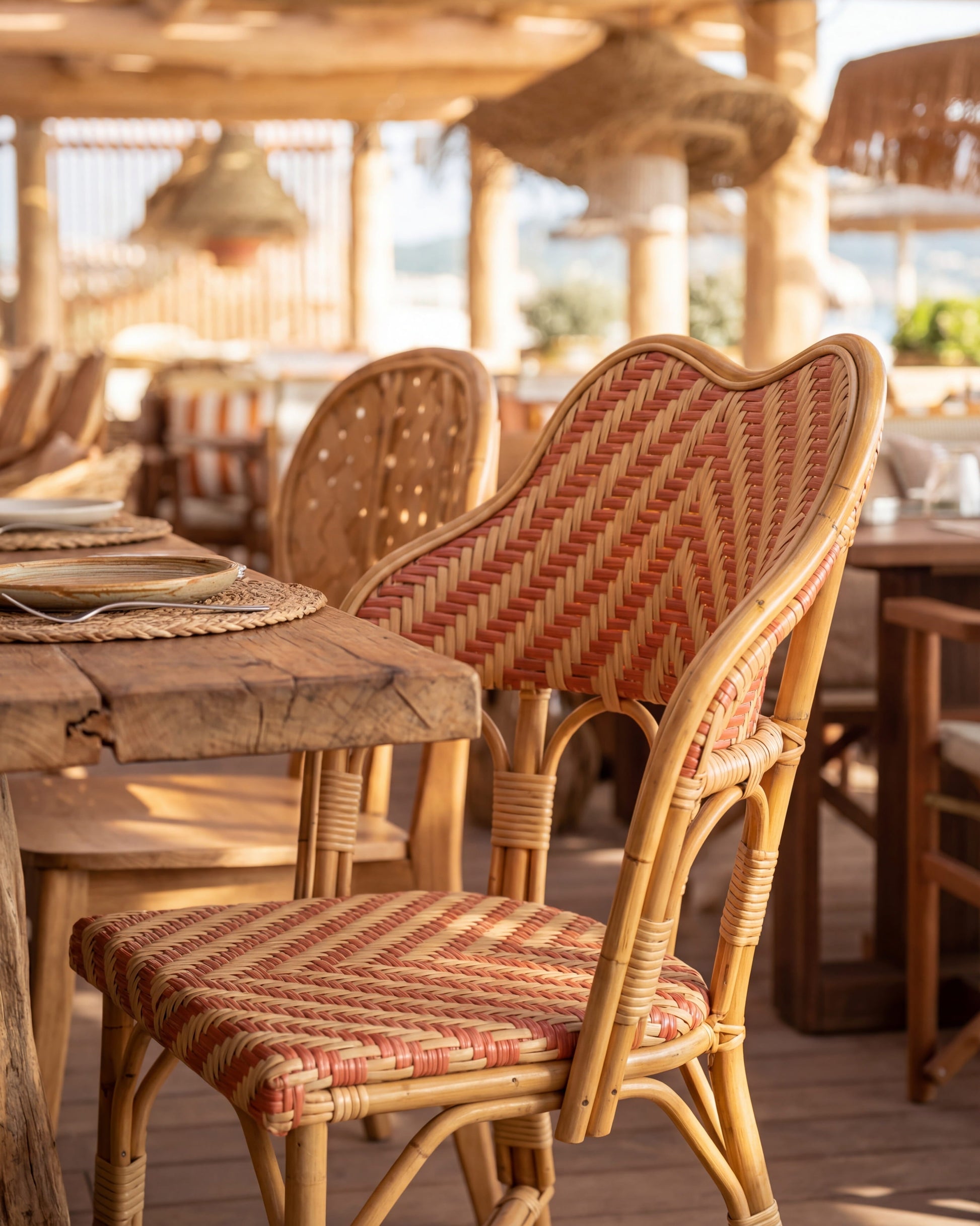 Elegant and distinctive, Ivo reinterprets the classic dining chair with a sculptural silhouette. Its curved backrest and refined woven structure combine comfort, lightness, and durability, while its slender proportions bring effortless sophistication to both indoor and outdoor spaces.