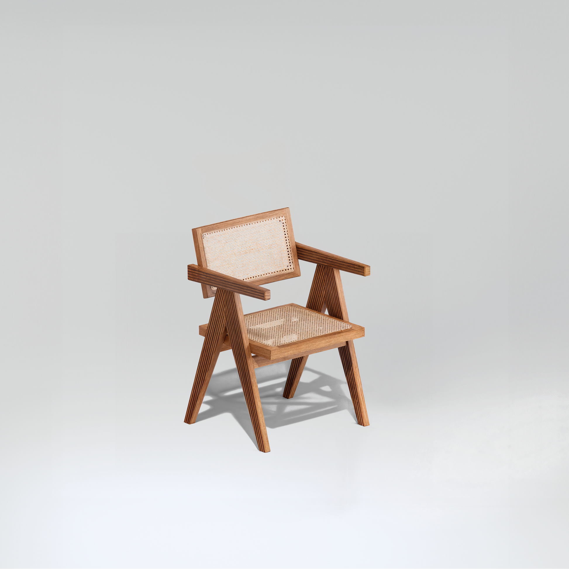 A more generous interpretation of the Nima chair, this armchair adds comfort while preserving the collection’s light and balanced silhouette.
