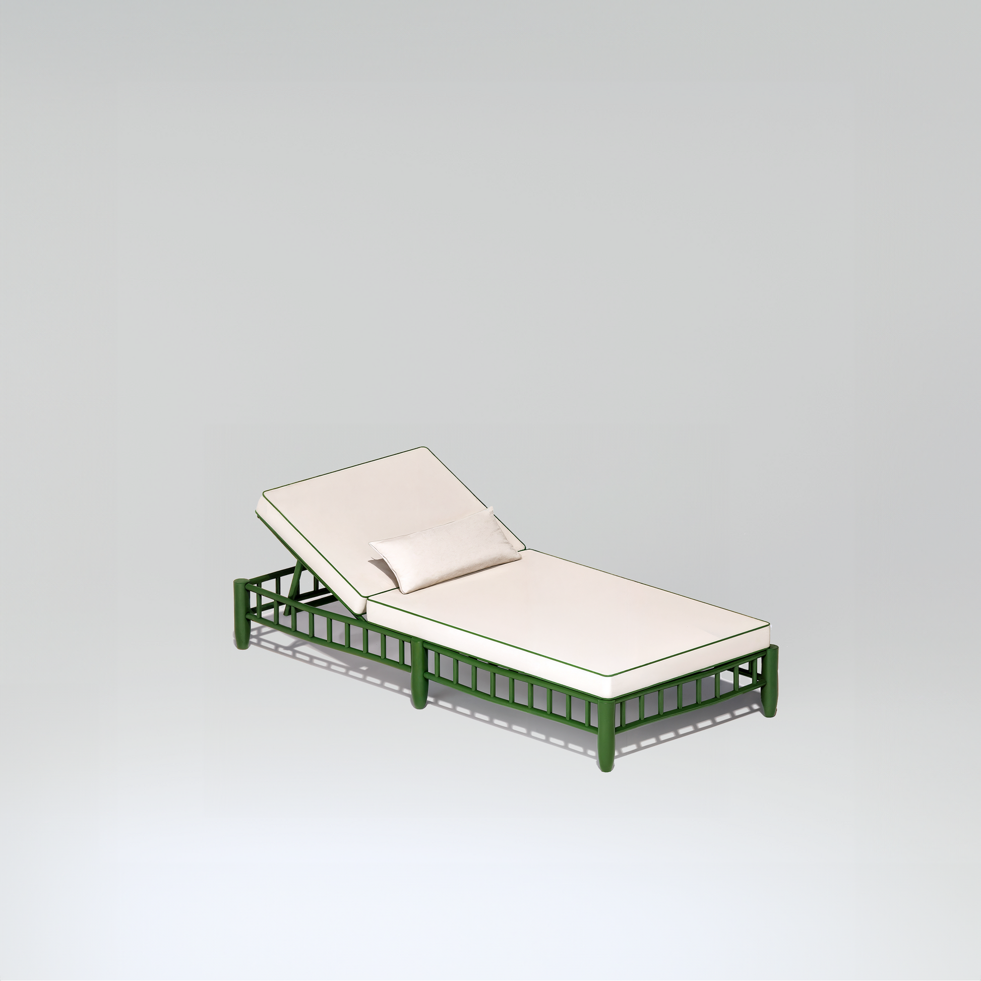 Elegant and timeless, Maia is crafted for outdoor relaxation. Its solid teak structure supports a woven surface and adjustable backrest, offering both comfort and durability for poolside and terrace environments.