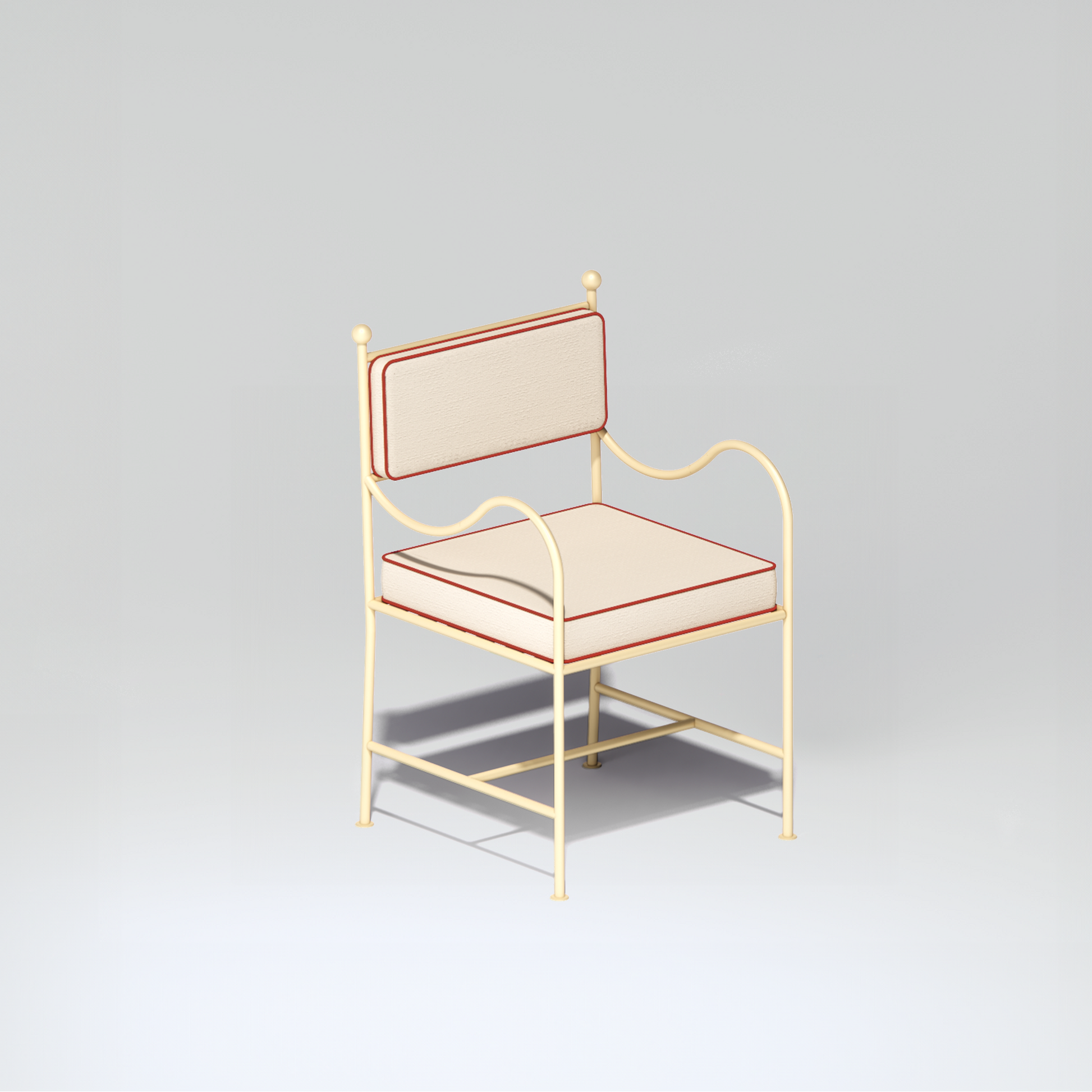 Its soft curves and padded seat create an inviting balance between comfort and structure, ideal for both indoor and outdoor settings.